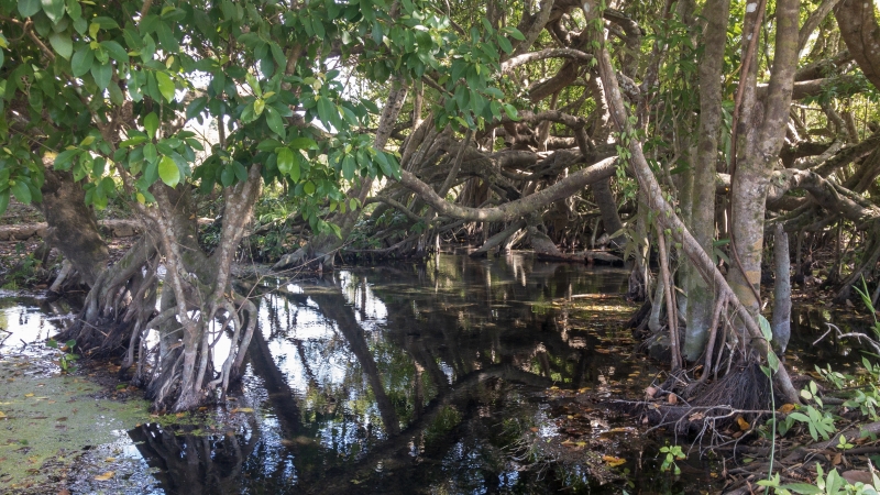 Auf dem Rückweg stelle ich das Rad ab und wandere noch 5km zum Crocodile Lake. Der Weg ist gut ausgebaut und schlängelt sich durch schön durch die gewaltigen Bäume. Am Ende des Wegs steht man dan unvermittelt am See. Dort warten aber keine Krokodile, sondern nur ein gieriger Kassierer – nochmals 140.000 Dong. Die Krokodile sind alle im Wasser und lassen nur ab und zu durch ein Platschen von sich hören.