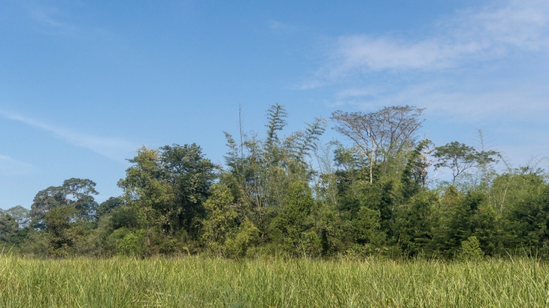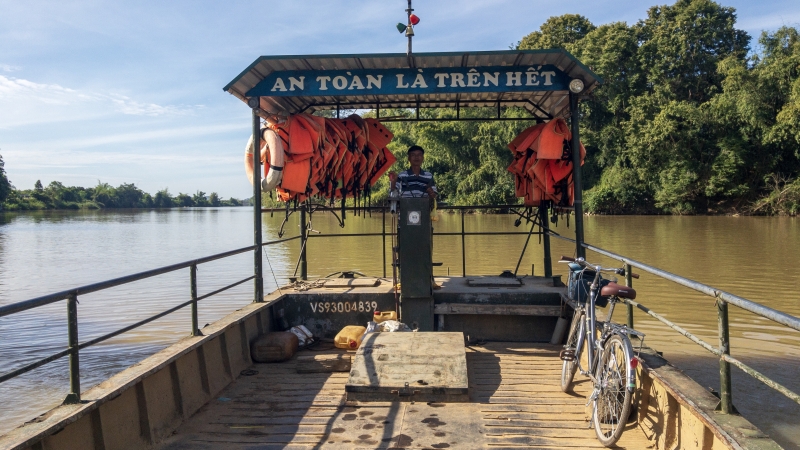 Mein erstes Ziel in Vietnam ist der Cat Tien Nationalpark. Vor zwei Tagen bin ich in der auf der gegenüberliegenden Flussseite gelegenen Green Bamboo Lodge angekommen. Die Lage hat Vor- und Nachteile wie ich feststellen musste: Der Bungalow liegt zwar sehr schön und ist auch deutlich günstiger als im Park, aber der Eintritt wird einem künstlich erschwert. So muss man 100.000 Dong (ca 4€) extra zahlen, um ein Fahrrad mitzunehmen. Außerdem kommt man mit der Fähre erst um 7:30 rüber – das ist zu spät für Tierbeobachtungen.
