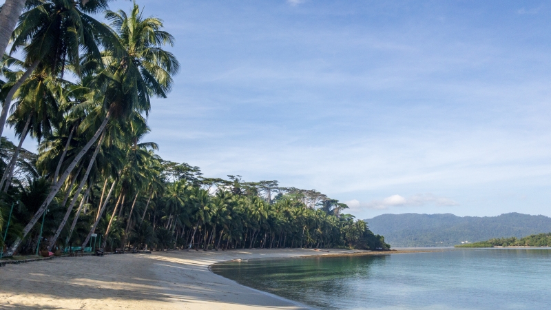 Für den nächsten Tag habe ich mir den White Beach vorgenommen. Für ein Boot ist es noch zu früh und so lasse ich mich mit dem Motorrad hinbringen. Der Strand mit dem kleinen und zurückgesetzt gebauten Resort ist wirklich traumhaft: Kokospalmen und feiner weißer Sand.