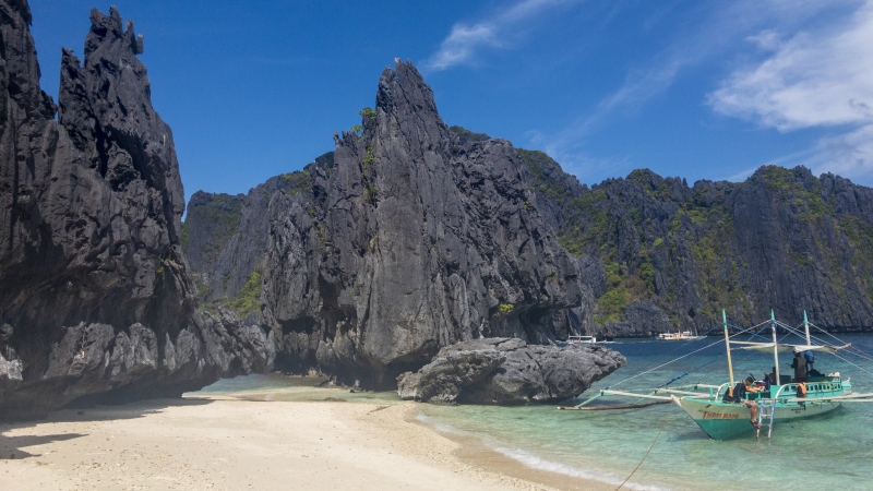 Ähnlich wie in El Nido werden auch hier in Port Barton Island Hopping Touren angeboten. Formal sind sie genauso standardisiert wie in El Nido: Feste Routen A-D, die alle 1200 Pesos, d.h. ca. 20€, kosten. Allerdings weichen die tatsächlichen Routen dann doch etwas davon ab. So entscheide ich mich für Tour A aber mit Exotic Island als zusätzlichem Ziel und maximal acht Passagieren.