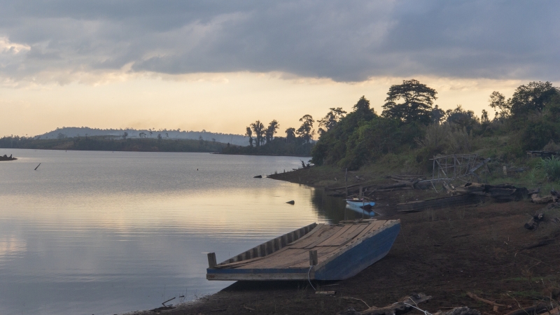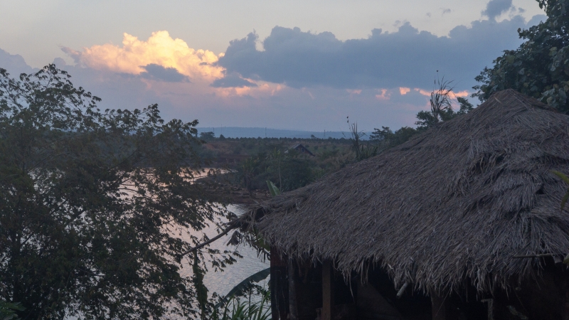 Kurz vor Sonnenuntergang erreichen wir dann das Camp in Osoam: Ein paar einfache Holzhütten am See, kein Strom und viele Frösche.